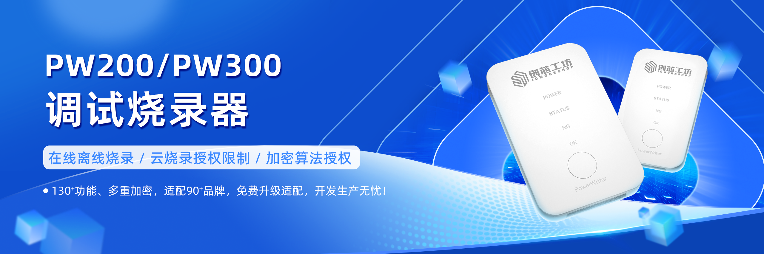 PowerWriter® 是创芯工坊官方推出的面对嵌入式开发者和生产企业的硬件工具品牌,目前产品已包括:在线调试器、无线调试器、离线烧录器、授权密钥和高压隔离板等,主要适用于Arm架构和RISC-V架构单片机开发和批量生产使用。PowerWriter® 产品以出色的安全功能设计、高效稳定表现和云端烧录等拓展服务,已成为超过50余家国内外主流单片机厂家的首选工具供应商,且为用户提供持续软件更新和在线技术支持!